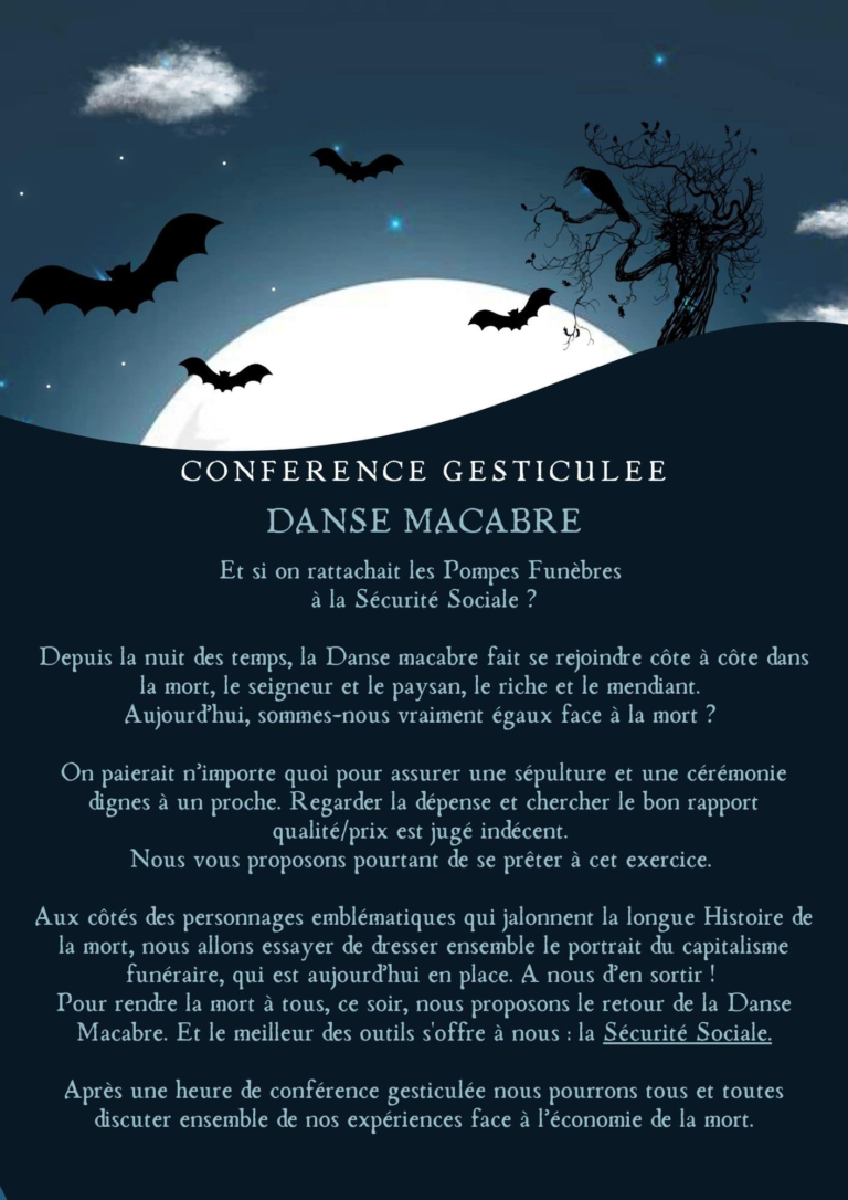 Une vingtaine de personnes a participé au café mortel qui a suivi. La formule du café mortel consiste à solliciter les témoignages vécus et les réflexions de l’assistance en veillant à équilibrer les prises de paroles . Alban et Jean-Loup ont donné par morceaux des éléments tirés de la mythologie ,des traditions et de l’économie funéraire actuelle sous forme de mini conférences gesticulées.