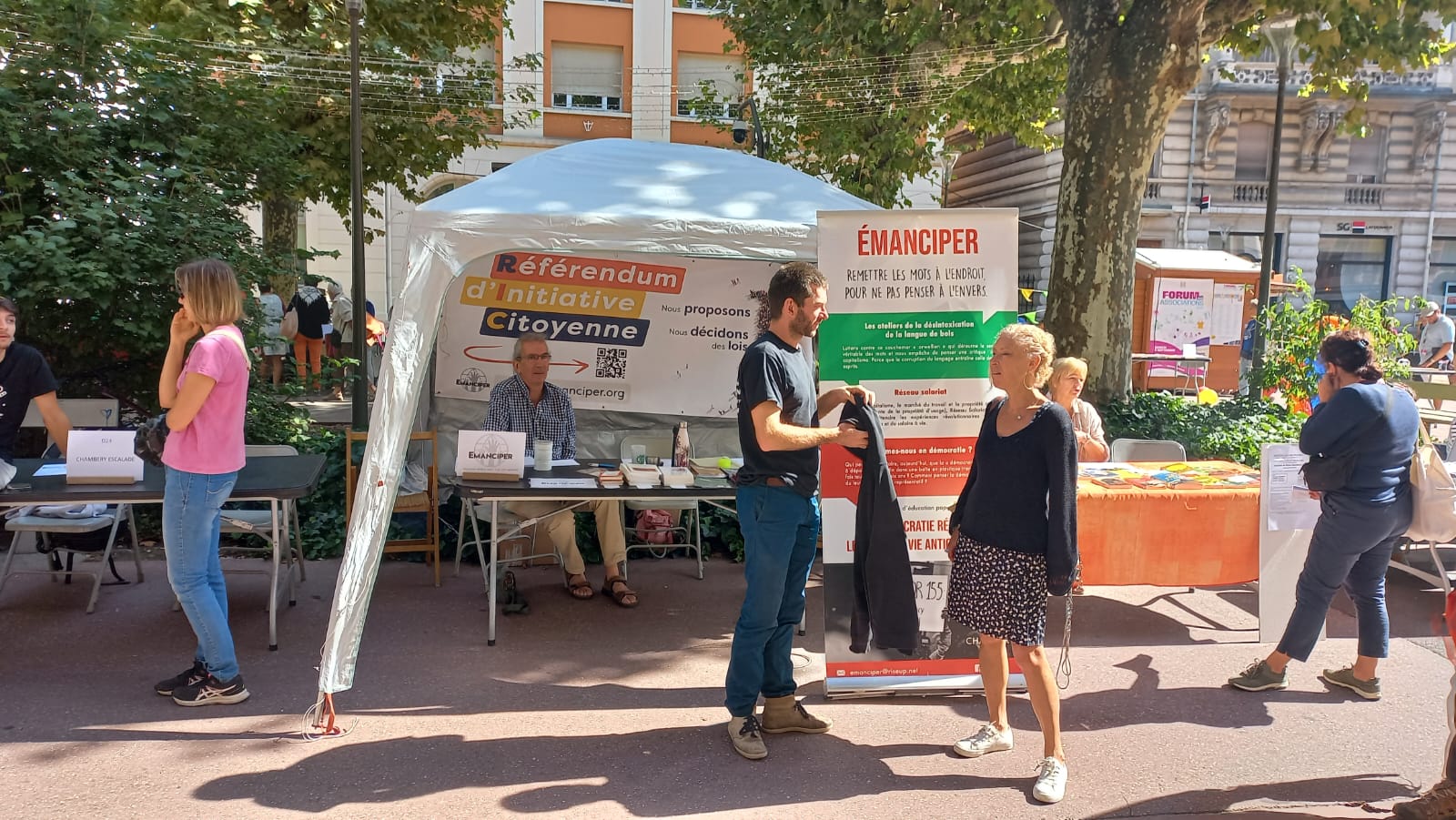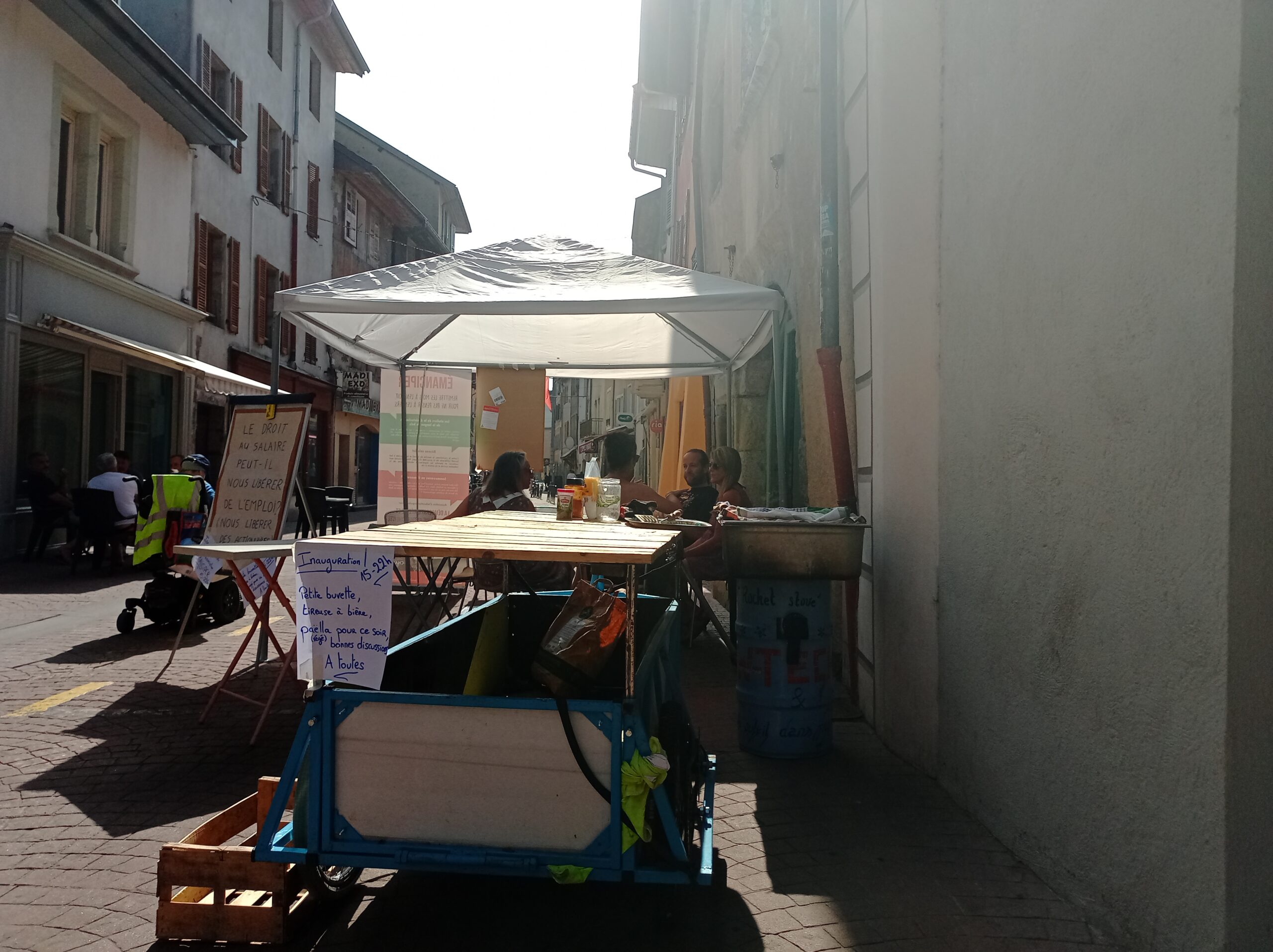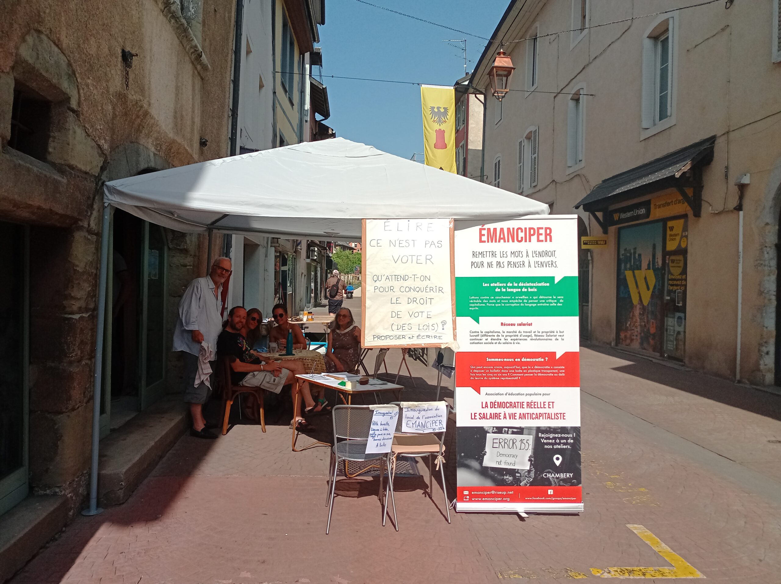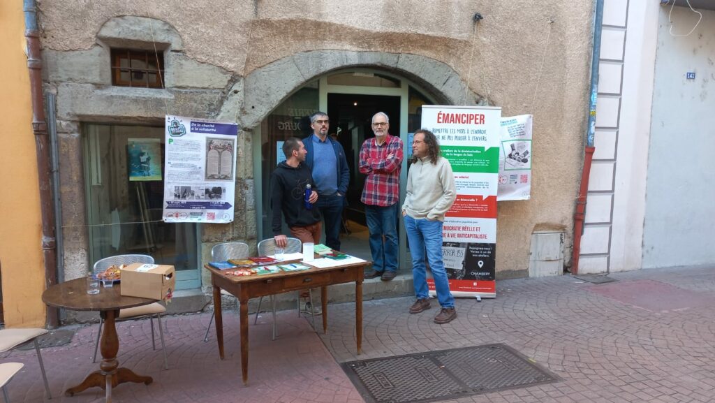 L’association Emanciper s’est dotée d’un local donnant sur le faubourg Montmélian depuis début 2025 Nous profitons des beaux jours pour l’inaugurer durant une journée festive et ensoleillée le samedi 14 juin à partir de 15h au 137 rue du faubourg montmélian Au menu: animation musicale sur le faubourg, présentation de l’association et échange avec les passants sur les sujets de la démocratie directe et de la reprise du pouvoir économique grâce à la qualification personnelle et la robustesse de la sécurité sociale Nous avons accueilli des sympathisants et des curieux avec possibilité de boire et manger sur place.