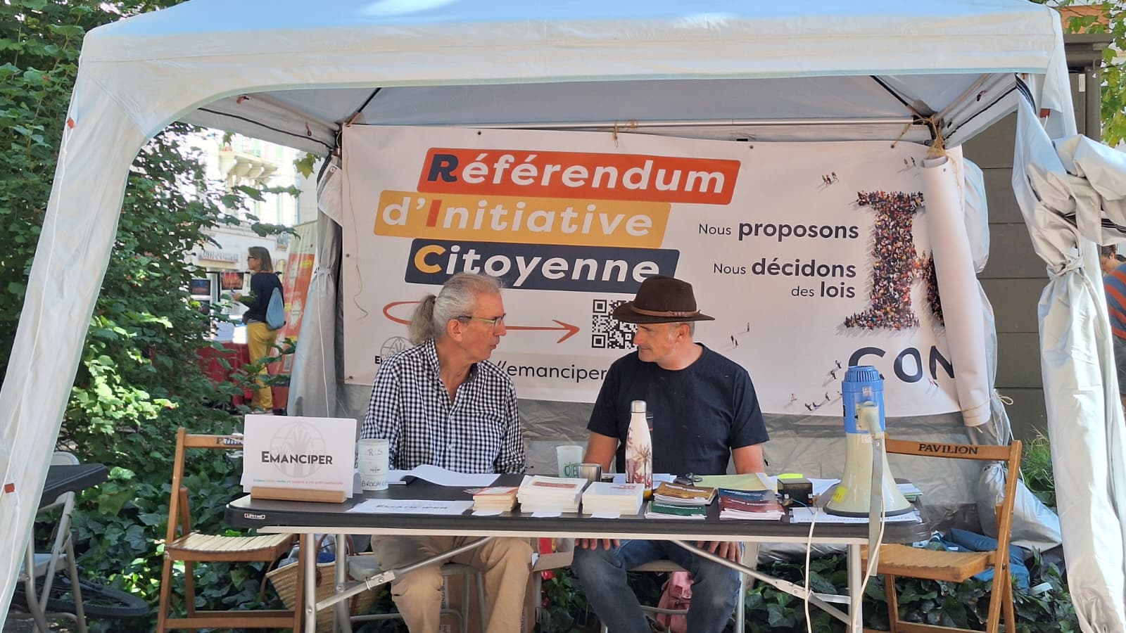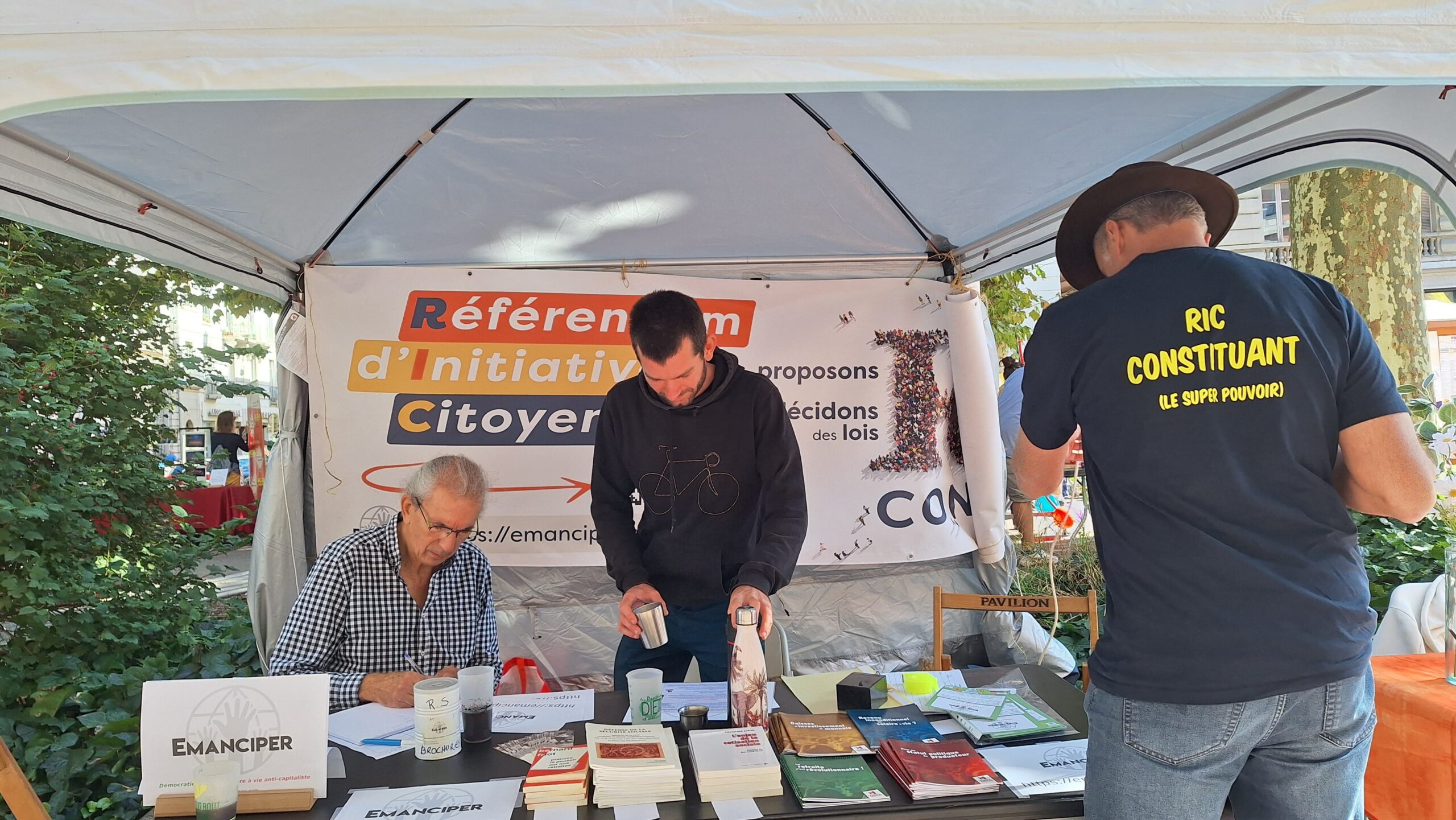 - Albin Guillaud nous a conté son expérience de militant pour la démocratie directe, depuis ses débuts jusqu’aux activités avec l’association nationale Espoir RIC et le parti politique solution démocratique qui vient de se créer, pour la démocratie et notamment le référendum d’initiative citoyenne sur la constitution (RIC Constituant ou RIC C), ainsi que les mobilisations et l’observatoire de la démocratie locale qu’il a initiés avec sa compagne à St Alban Leysse. Emanciper soutient bien sûr ces initiatives.